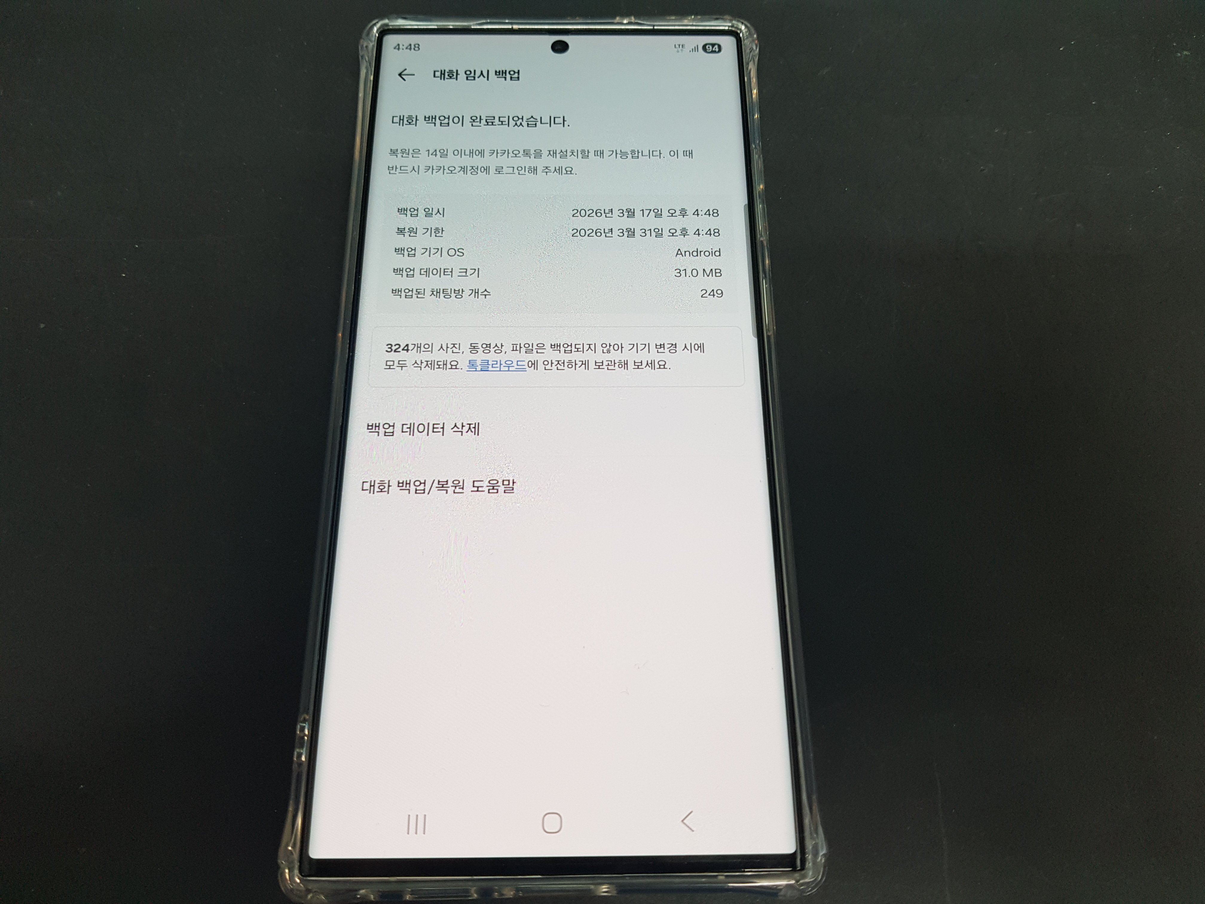 카카오톡 임시 백업